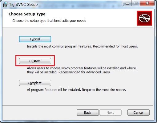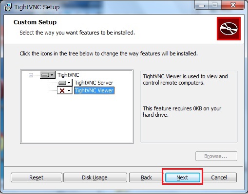 「TightVNC Viewer」をクリックし、「Entire feature will be unavailable」をクリックしてください。