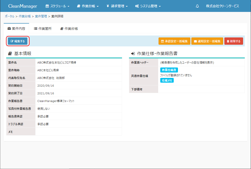 ②選択した案件の登録内容が表示されます。「編集する」ボタンをクリックします。 |