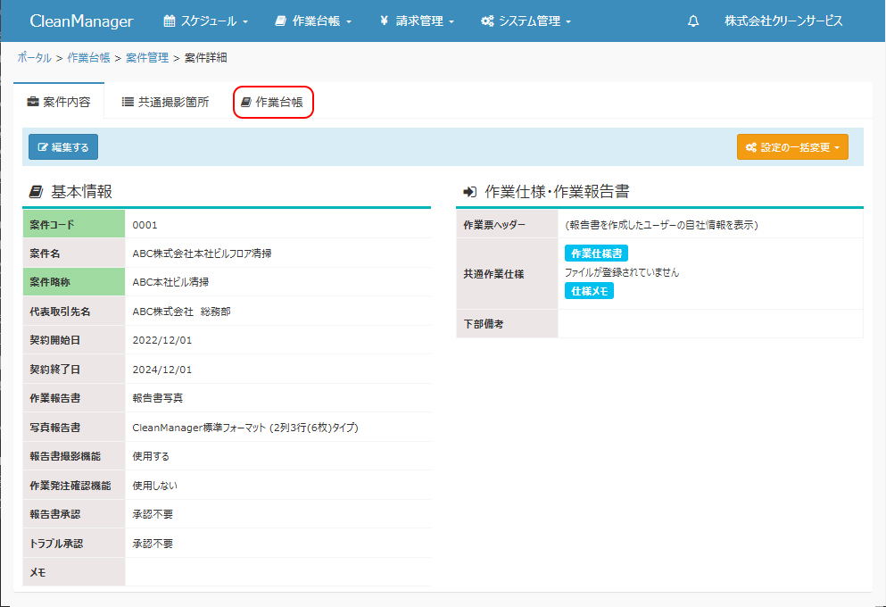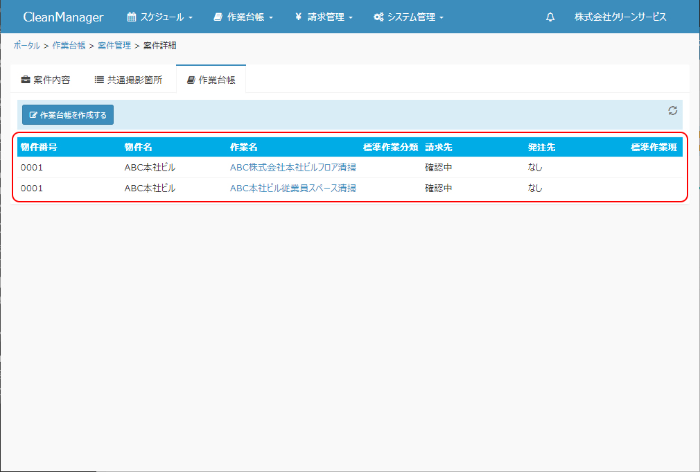 ③ ①で選択した案件に関連する作業台帳が一覧表示されます。