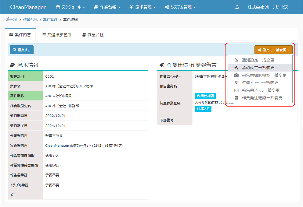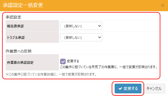 案件に紐づく作業台帳すべての承認設定を一括で更新します。 | |||