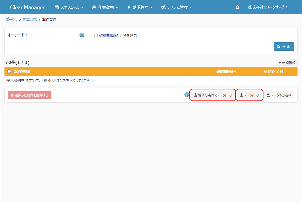 >案件管理>案件情報のデータ出力