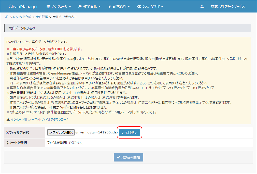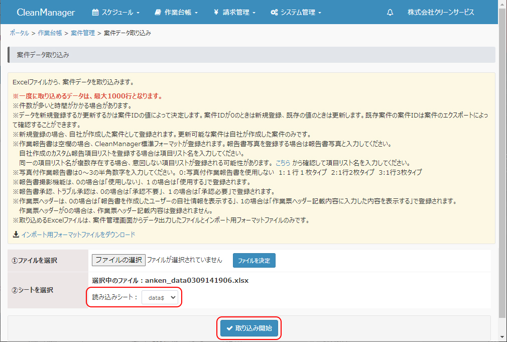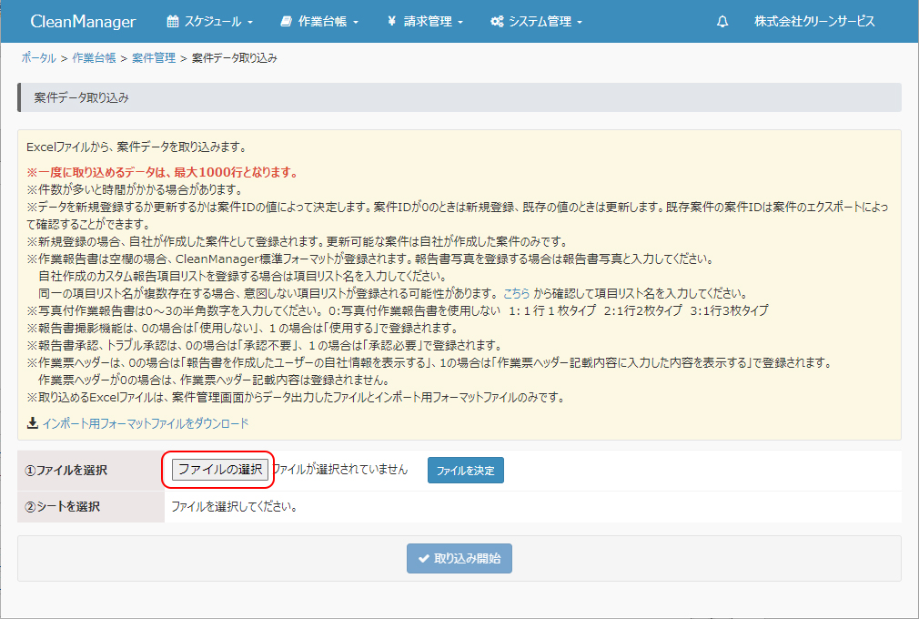 ※取り込めるExcelファイルは、案件管理画面から出力したフォーマットのみです。→案件情報のデータ出力