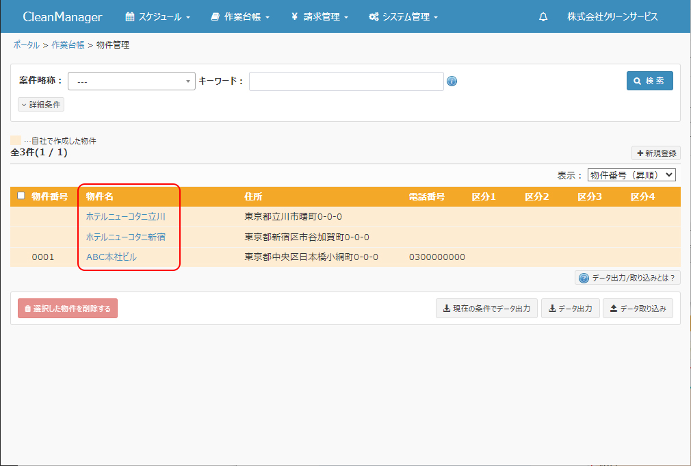 ③物件管理画面に戻ります。これで、編集した内容にて物件情報が更新されました。 |