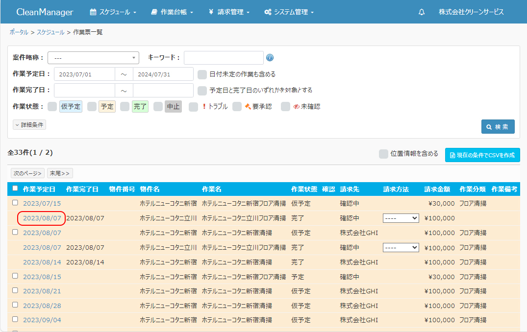①スケジュール画面からスケジュール詳細画面、または作業票の編集画面を開きます。