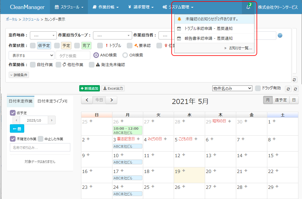 報告書承認欄ならびにトラブル承認欄にて「承認必要」と設定された作業台帳、もしくは案件に基づいて作成された作業票を完了状態にした場合、上位の取引先に対する報告書とトラブル情報の公開にあたり承認処理が必要となります。 例えば、A社(発注元)B社(発注先)という2社が関連する作業票の場合、B社が元となる作業台帳の報告書承認欄ならびにトラブル承認欄にて「承認必要」と指定している場合にはB社の承認担当者が本処理を行うまでA社に対して報告書ならびにトラブル情報が公開されません。 ※報告書承認欄ならびにトラブル承認欄にて「承認不要」と設定された作業台帳ならびに案件を元に作成された作業票の場合、本処理に関する項目は表示されません。 ※「承認必要」と設定された作業台帳ならびに案件を元に作成された作業票の場合でも、ユーザーマスタにて作業票完了承認処理権限が付与されていないユーザーの場合は本処理に関する項目は表示されません。 |