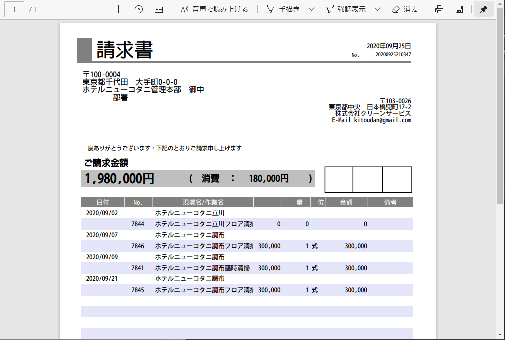 ③ ②で「請求書を発行する」ボタンをクリックした場合、新規タブにてプレビュー画面が表示されます。
