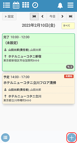 ①各カレンダー画面にて「+」ボタンをタップします。 |