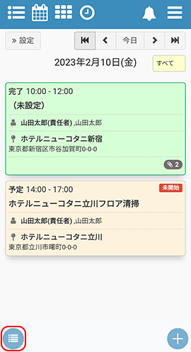 開始日~終了日:指定された期間に該当する作業票/ライブメモが表示されます。