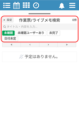 日付未定:日付未定状態の作業票・ライブメモが絞り込み表示されます。 |