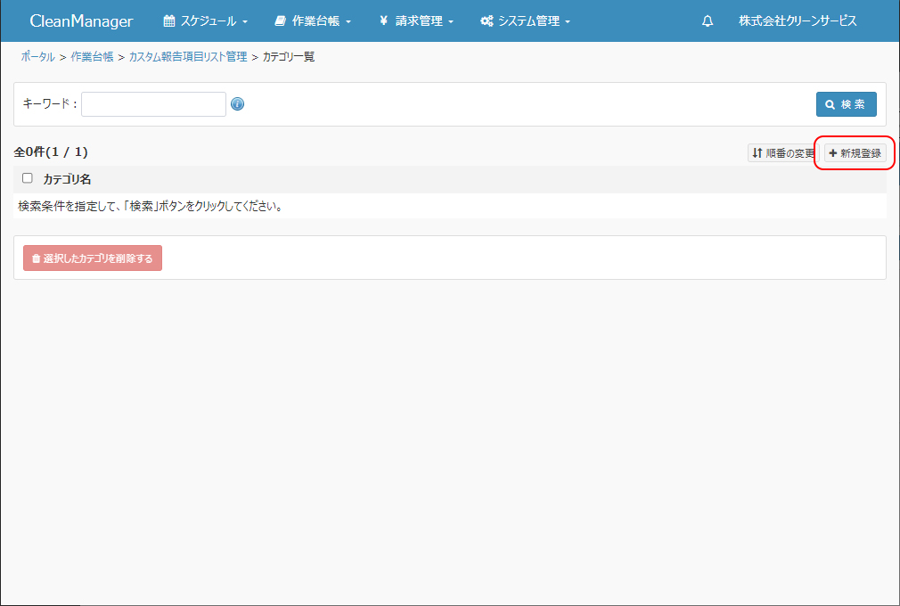 >カスタム報告項目リスト管理>カテゴリの新規登録