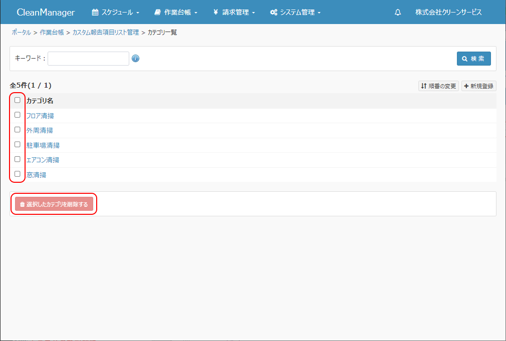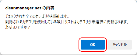 ④カテゴリ一覧画面に戻ります。これで、②でチェックしたカテゴリが削除されました。