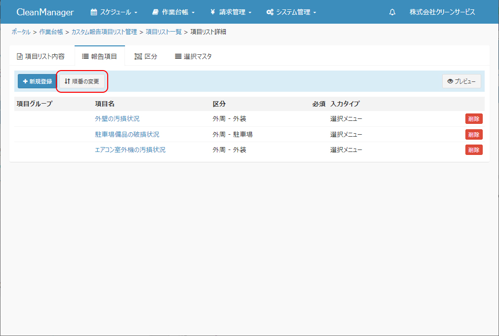 ⑥ ③で選択した項目に対応した一覧画面に戻ります。各項目の表示順が⑤で並べ替えた順番に変更されました。 | |
