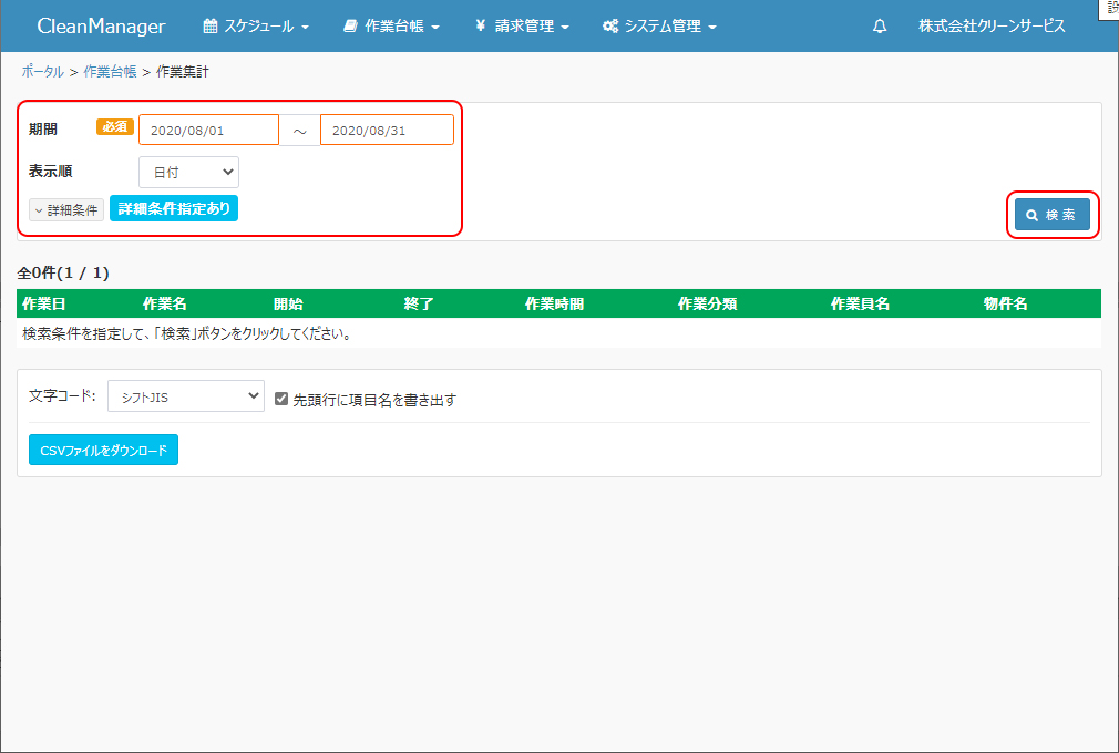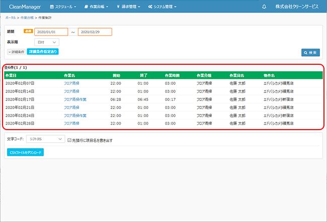 ※ユーザーを選択できるのはユーザーマスタにてシステム管理者として指定されているユーザーのみとなります。(一般ユーザーは自分の作業しか集計できません。)