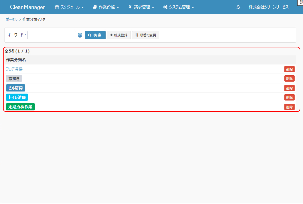 ③作業分類マスタ画面に戻ります。登録された作業分類が表示されていることをご確認ください。 | |