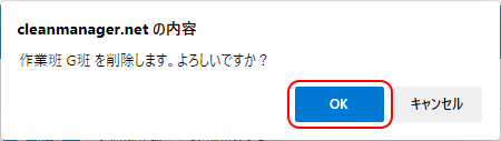※既に登録済みの作業台帳にて使用されている作業班は削除することができません。その場合はエラーメッセージが表示されます。