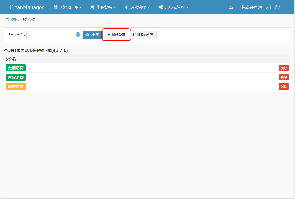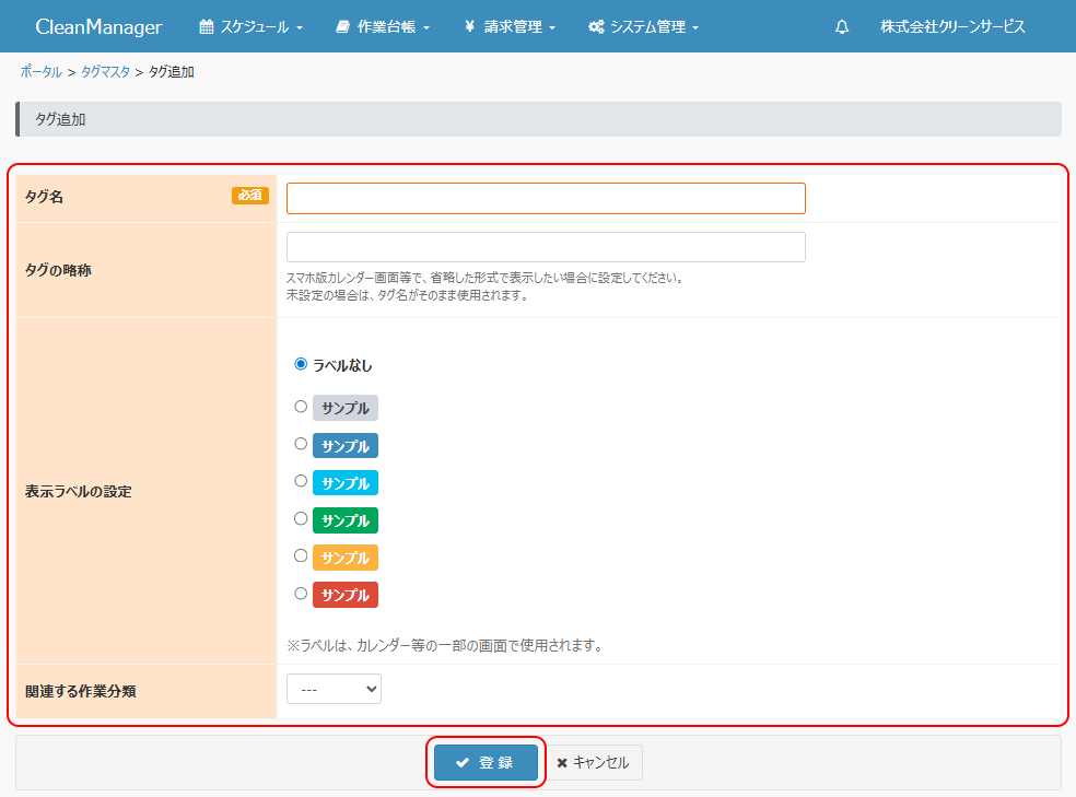 タグマスタを新規登録します。