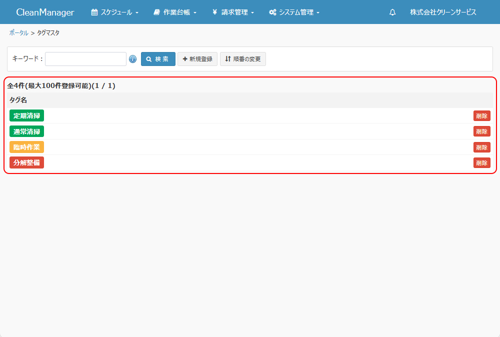 ③タグマスタ画面に戻ります。登録されたタグが表示されていることをご確認ください。 |