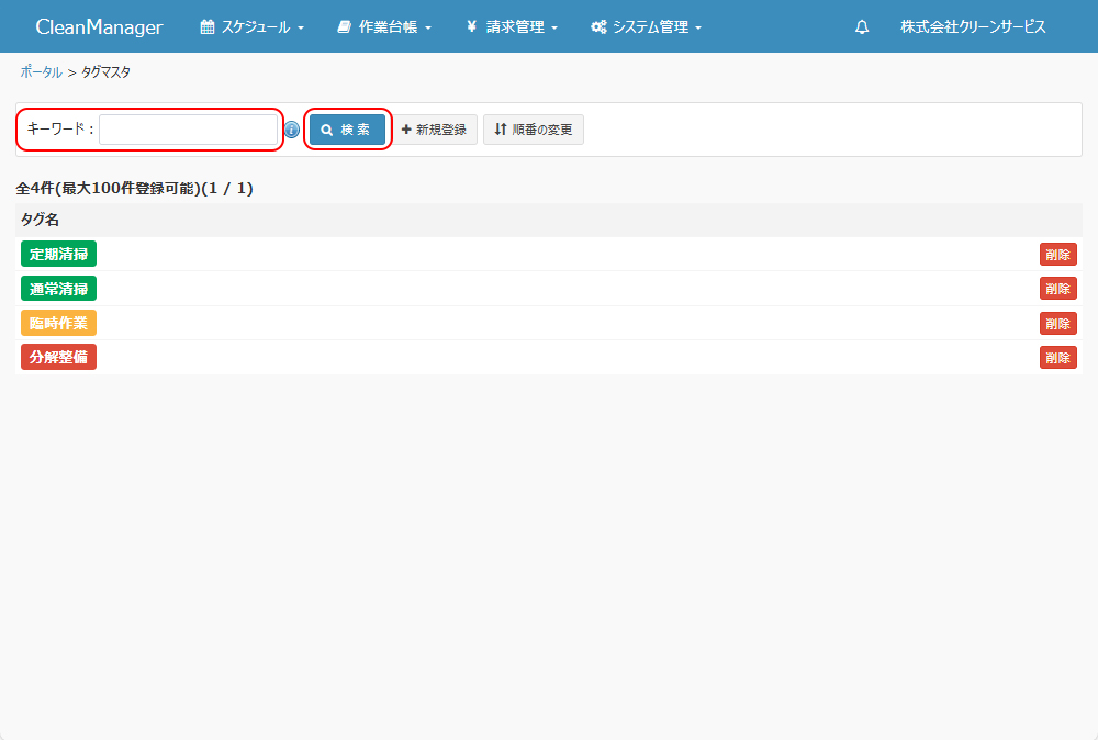 タグマスタの検索