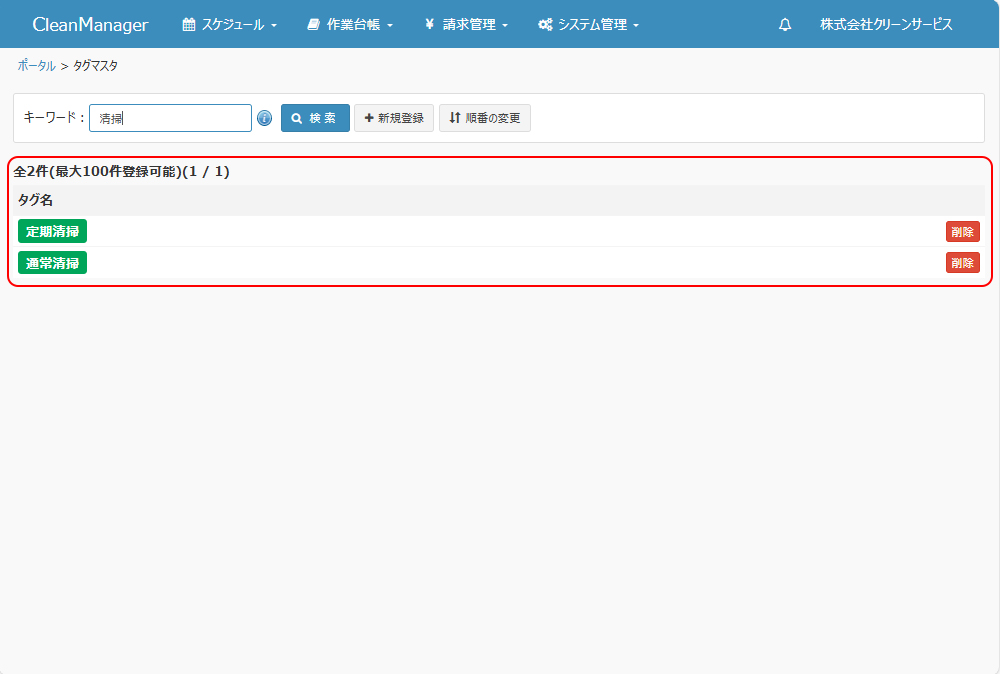登録済みのタグマスタを検索します。