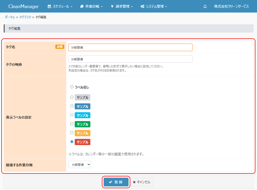 ※タグが複数設定されている場合は、関連する作業分類が設定されたタグの中で表示順が最も早いものが適用されます。 |