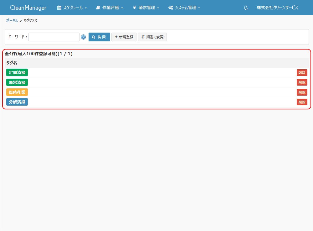 ③タグマスタ画面に戻ります。タグの表示内容が②で編集した内容に更新されました。 |