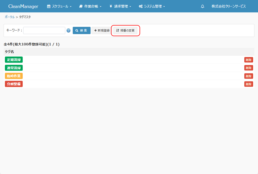 タグマスタの一覧にて表示されるタグの並び順を変更します。