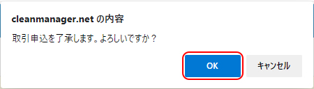 ③確認メッセージが表示されます。よろしければ「OK」ボタンをクリックしてください。取引申込の了承が完了します。