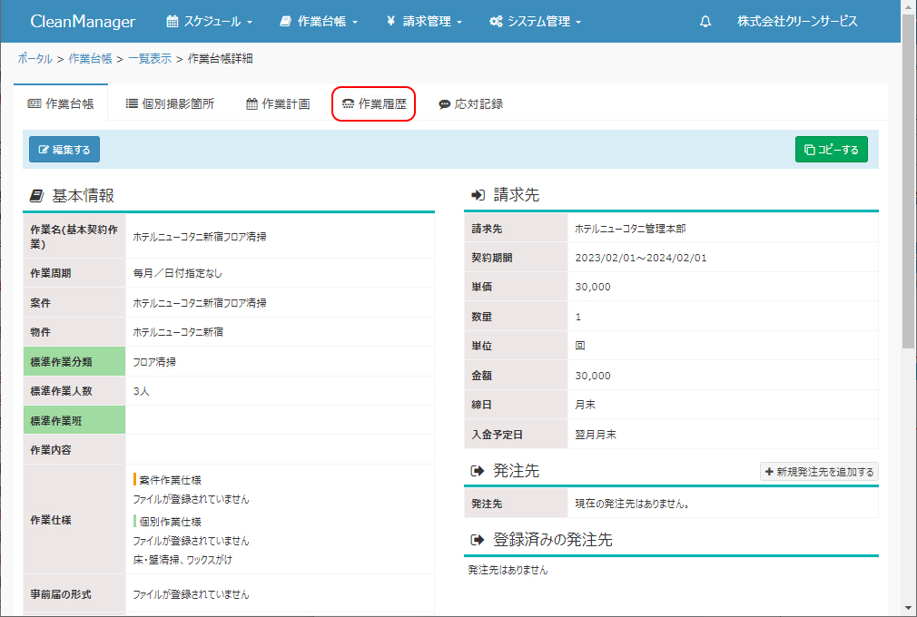 各作業台帳における実際の作業履歴を参照します。