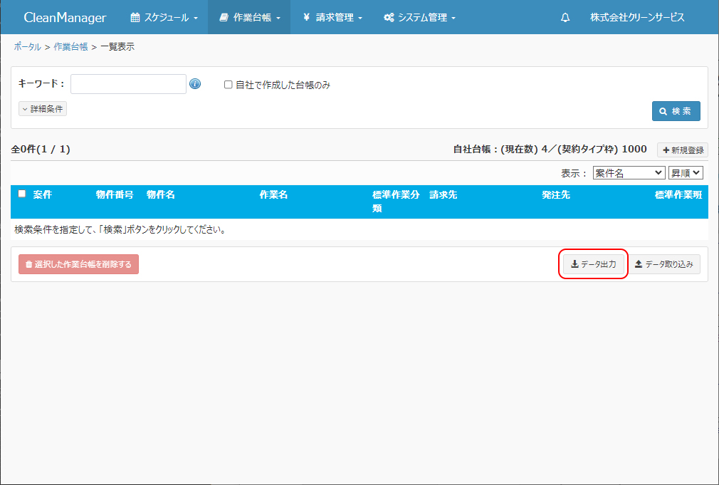 □自社で作成した台帳のみ:ログインユーザーが所属する取引先のユーザーが作成した作業台帳のみが抽出対象となります。