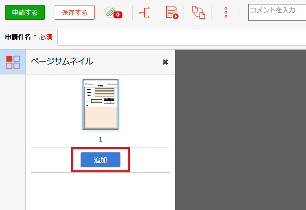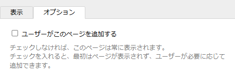 | ユーザーがこのページを追加する | 本設定を有効にすると、入力フォーム上でこのページが初期表示されず、ページサムネイルに[追加]ボタンが表示されます。[追加]ボタンをクリックするとこのページが追加されます。