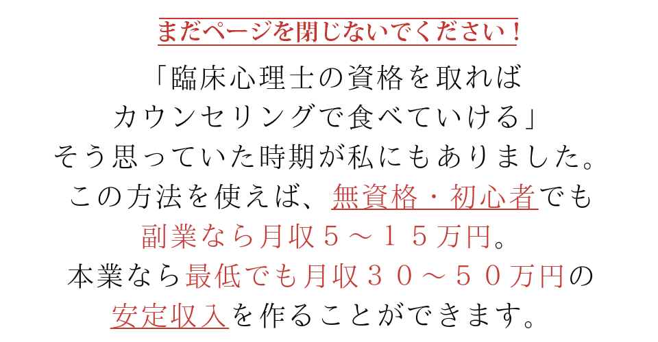 ようするに、クライアントに結果を出す方法は、心理職の経験がないコンサルタントからは学べません。そのようなわけで、あなたはしっかりと「結果を出す方法」も教えてくれる人から教わってください。そうでなければ、売ったら最後、「あとは自分で考えてね」と突き放され、孤独に悩み続ける日々が待っています。