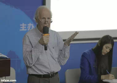 2014年11月15日,艾伦·麦克法兰教授演讲后回答现场听众提问。 (吴旭/图)