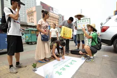 雷闯在秦皇岛街头征集爱心签名宣传乙肝知识。走在街头,雷闯苦行僧的装扮吸引了路人的目光,一路上他也得到了很多热心市民的支持,大家用握手的方式倡议消除乙肝歧视。