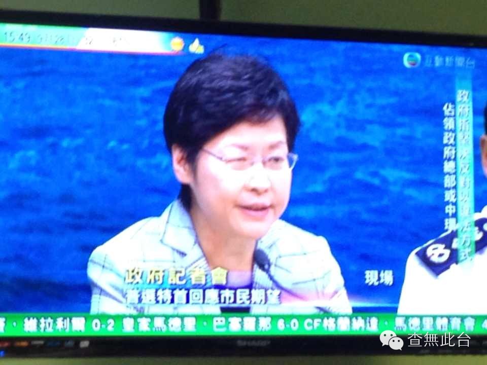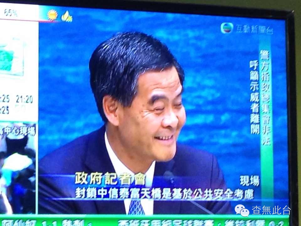 15:45 (特首记招ing)行政长官梁振英表示,就佔中行动启动违法佔中及要求推倒人大决定及重启咨询,非一般市民表达方式,是违法行为。梁亦表示,特区政府一定会维护香港市民的权益。