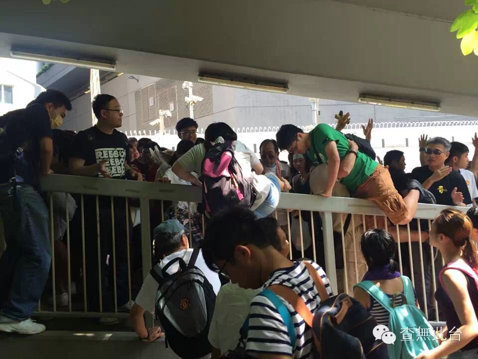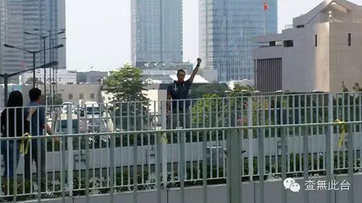 15:08 海富中心天桥往政总天桥,一男子爬上桥边花槽抗议。谈判专家到场,劝谕该男子“返落嚟”。消防在桥下充好气垫,占用一条车道。