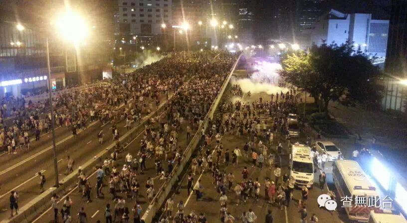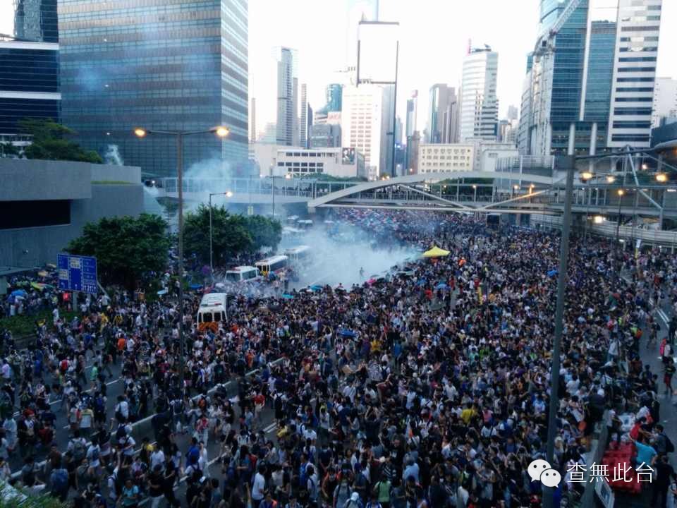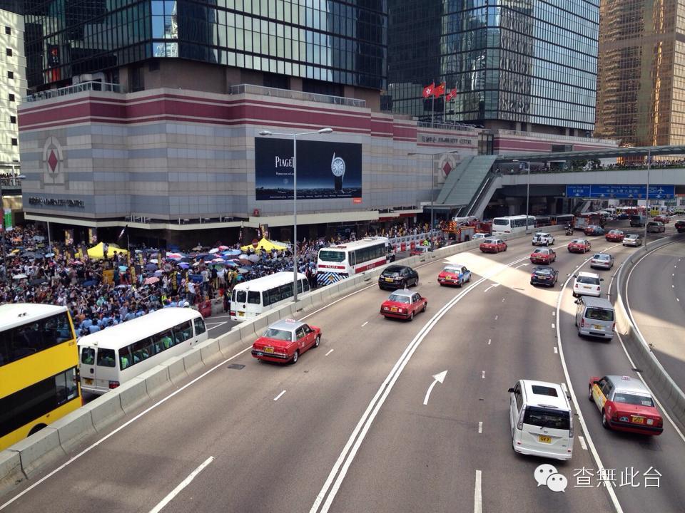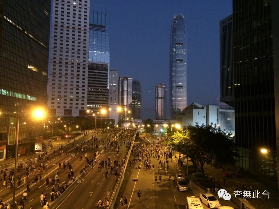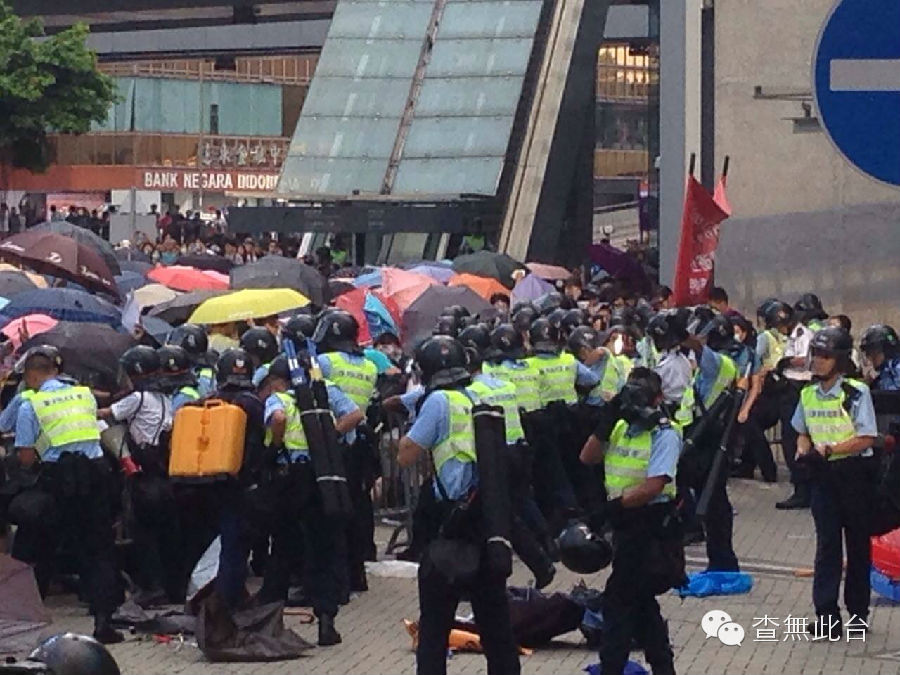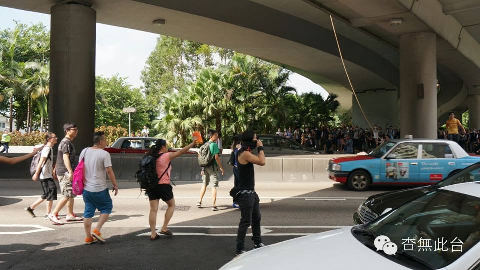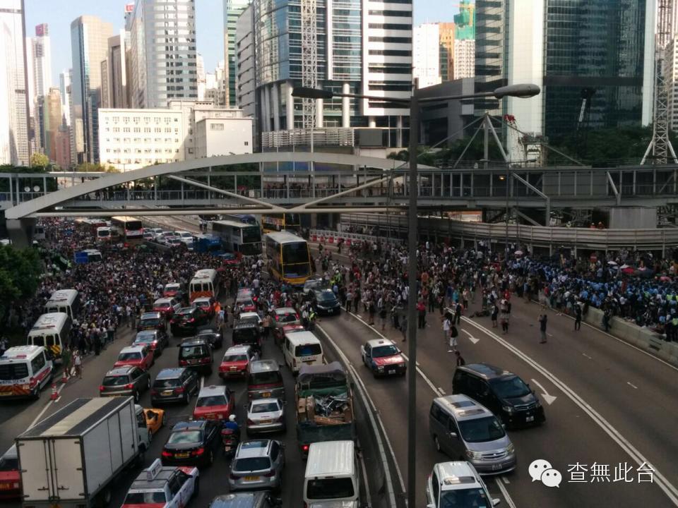 16:27 由添美道至龙汇道,有大批市民冲出马路,成功占领告士打道双向车道。市民高呼“释放黄之锋”、“梁振英下台”。警察遭反包围后撤离,现场示威者大呼警方收队。