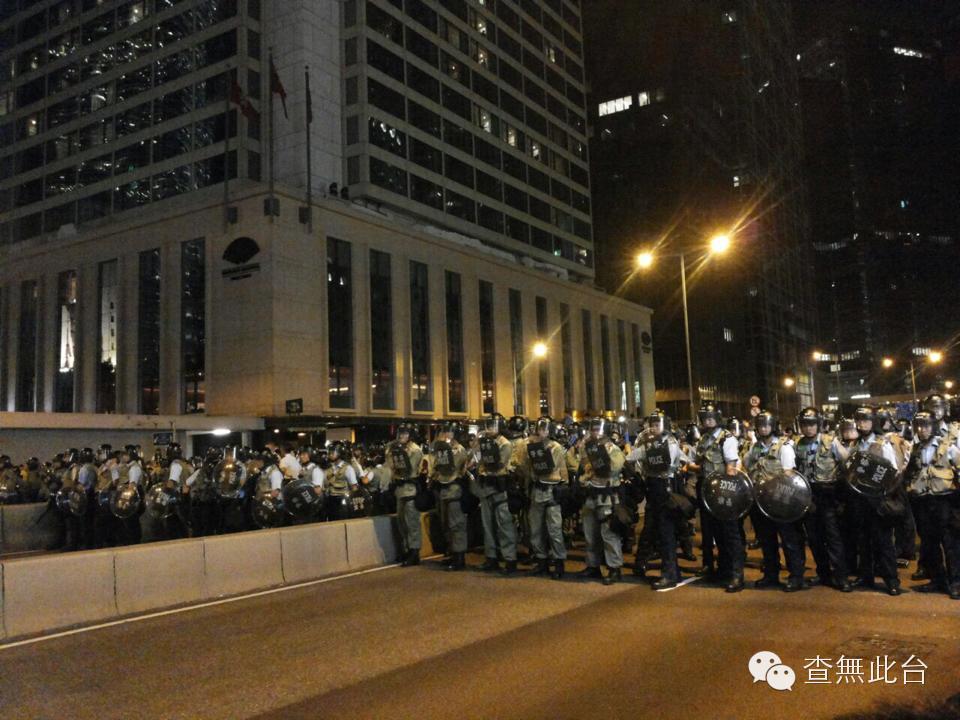 22:09 花园道附近电车路聚集大量配备盾牌的警察。