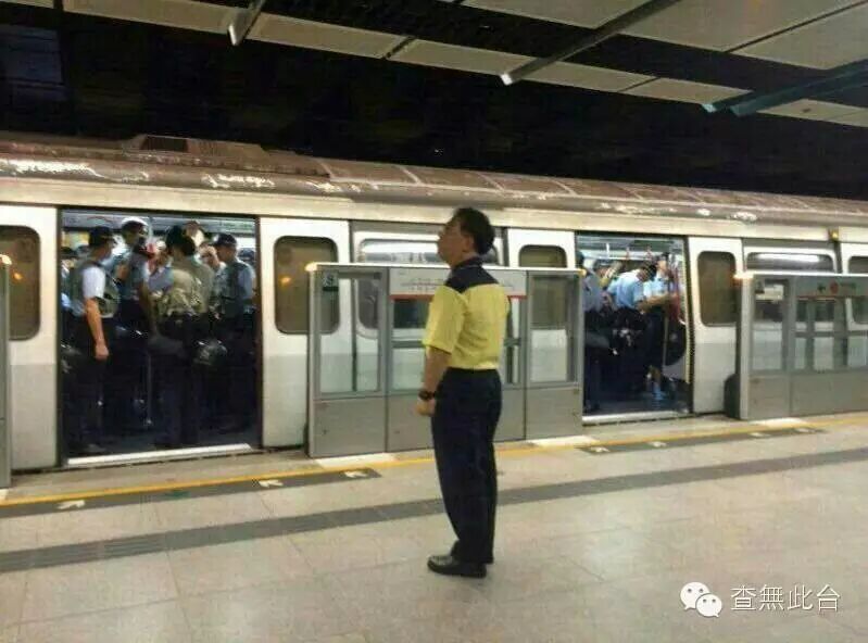 18:17 金钟站内有大量警员,不少记者在地铁内大声呼叫前往者转用告士打道D出口。金钟站内大部份便利店落半闸不做生意,邻近的面包店亦落半闸,有人正大量购下面包食量。