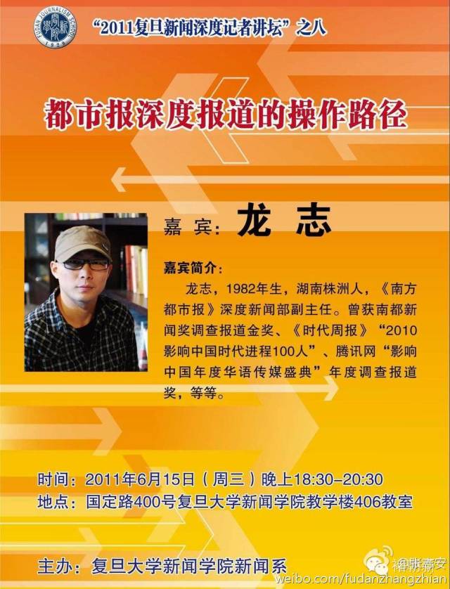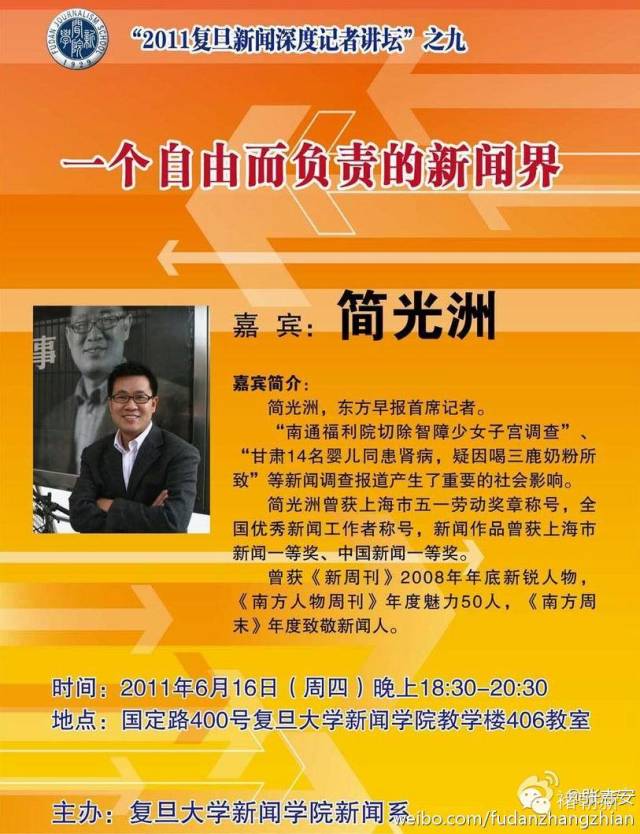 确实,人的想法是会变的。比如我,对新闻、对这个行业的很多看法总在变。6月的上海之行是生平第一次去上海,应复旦张志安兄之约到复旦大学参加2011复旦新闻深度记者讲坛(注:同去讲座的,还有曹筠武、龙志、刘长、林天宏、简光洲等同行。那时,曹筠武还在《南方周末》,龙志还在《南方都市报》,林天宏还在《中国周刊》,刘长还在《新世纪周刊》,简光洲还在《东方早报》,我还在《新京报》,召集人张志安兄,也还在复旦大学。如今,物是人非。在网上,还找到当时复旦的海报,可惜,只找到龙志、简光洲和我的。)