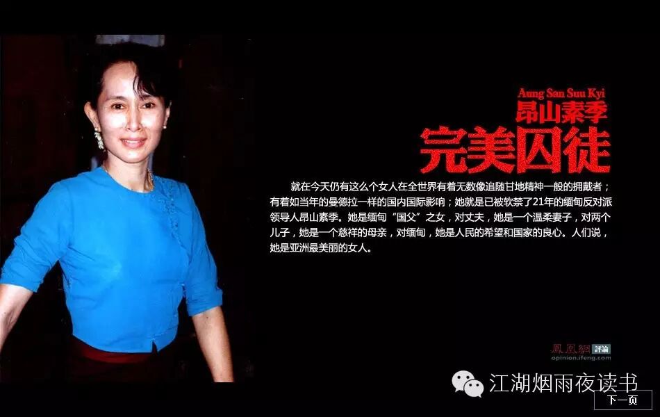 “我的存在就是最好的抗议。”在一次接受BBC的采访时,昂山素姬总结说。